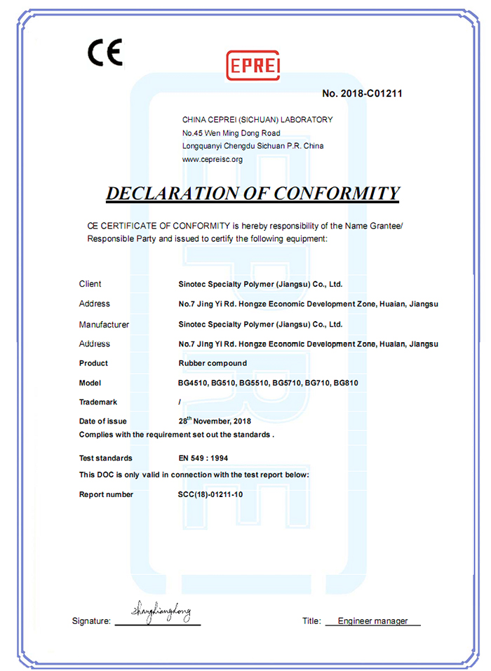 通過EN549認證燃氣行業(yè)專用混煉膠
