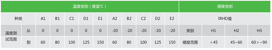本規(guī)定中涉及到的產(chǎn)品使用溫度范圍及硬度范圍請參照下表。